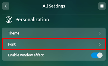 then you should see the “Font” settings options like below, click on it