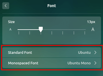 then select “Ubuntu” from the list for “Standard Font” and “Ubuntu Mono” from the list for “Monospaced Font” –
